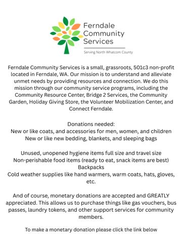 Below is a list of organizations participating in our event. We have listed their current needs and information to donate directly